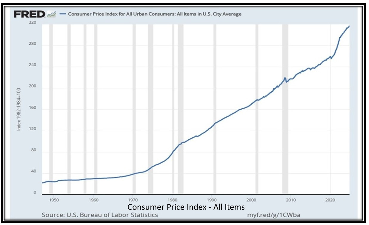 That’s why prices seem to always seem to go up but rarely come down. Our society has accepted economic growth as a means of ensuring full employment and full-time employment as essential for a desirable quality of life. We don’t want the government to do the things it would need to do to keep prices from rising or bring them back down once they have gone up because it would threaten economic growth and employment. We are also unwilling to make changes in lifestyles necessary to take advantage of existing opportunities to reduce our cost of living and pressure prices to adjust downward. And, we, collectively, have expressed a preference for the promise of lower prices by large corporate businesses rather than government enforcement of antitrust laws to make markets economically competitive to keep prices responsive to changes in supply and demand.